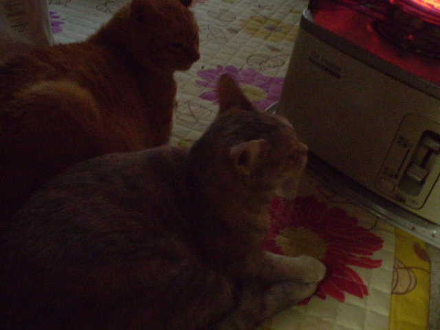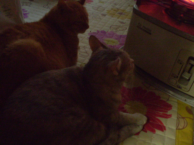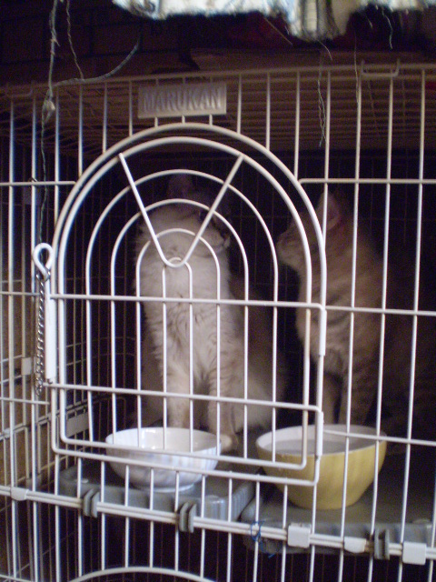 なぜかテスのケージでゴハンを待つ2にゃん・・・